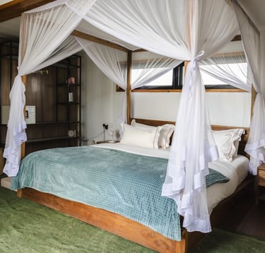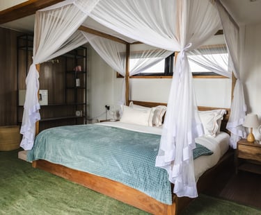 A spacious and elegant room featuring a luxurious king bed and a private en-suite bathroom. Perfect for couples seeking comfort, privacy, and a relaxing atmosphere after a day of adventure.